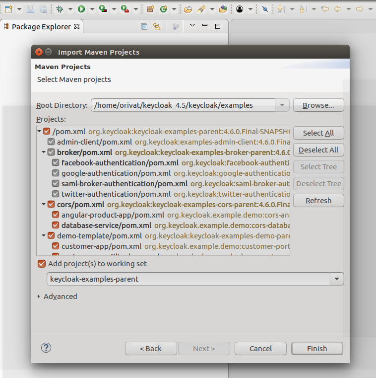 - Select the source path(It is the path of where the keycloak examples sources are located)