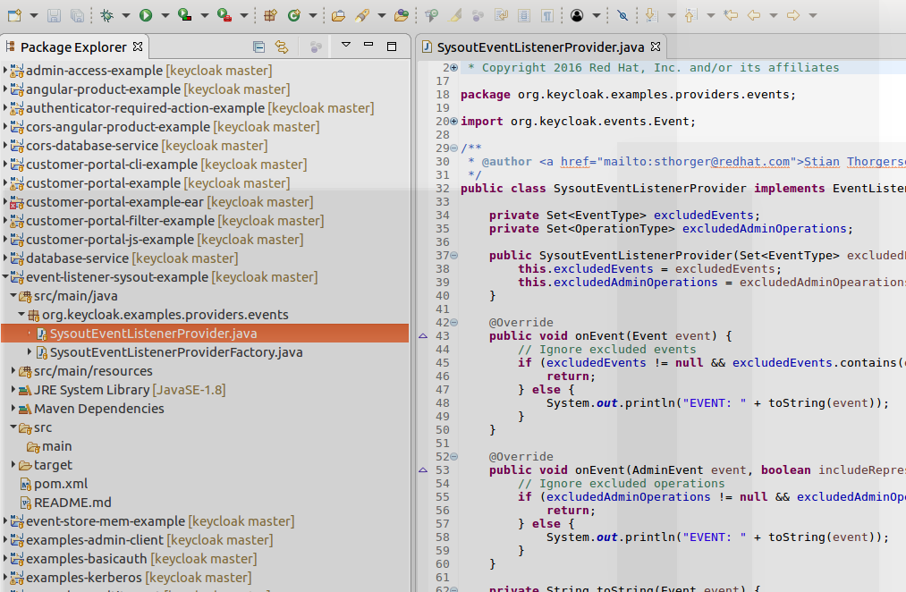 In this section is presented how to using eclipse to debug Keycloak SPI code. The example used is the eventListener described in a previous article.